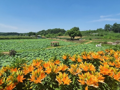 파주시 최북단 민간인통제선 통일촌 마을에도 여름을 맞아 꽃들이 만개하면서 한 폭의 장관을 이루고 있다.