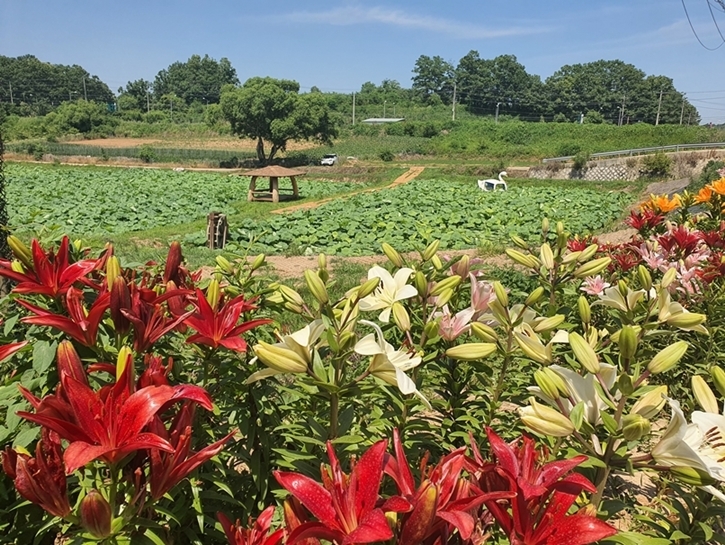 현재 통일촌에는 마을 입구 공원에 활짝 핀 메밀꽃과 백합꽃, 임진각곤돌라 상부 정류장으로 가는 차로 변에 마을 주민들이 공동작업으로 조성한 코스모스꽃과 꽃양귀비, 백합꽃이 만개했다.