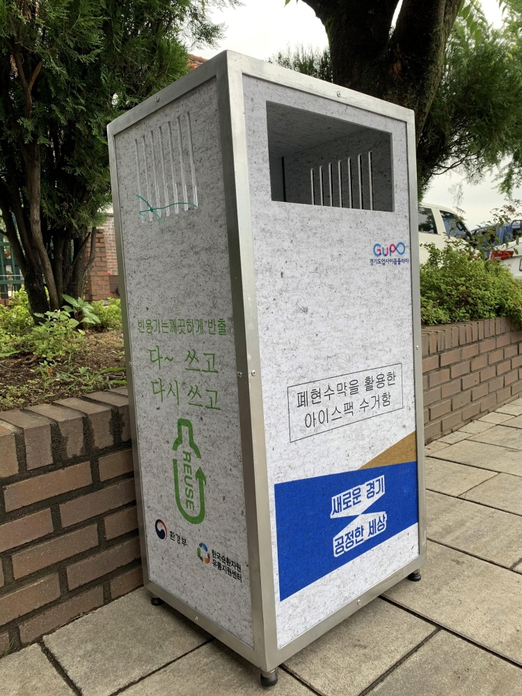 지난 5월 경기도는 환경부의 ‘지자체 폐현수막 재활용 평가’에서 ‘폐현수막 아이스팩 수거함 제작 재활용 계획’을 제출해 최우수 지자체로 선정된 바 있다.