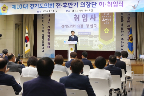 경기도의회는 10일 오전 10시 의회 1층 대회의실에서 ‘제10대 경기도의회 의장단 전·후반기 이·취임식’을 실시하고, 후반기 의회 일정에 본격 돌입했다.