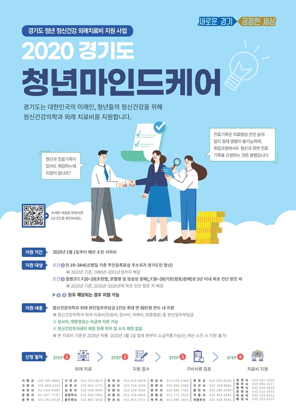 경기도, 청년들의 정신과 외래치료비 연간 최대 36만원까지 지원 - 경기도 청년건강증진사업 이달부터 시행. 만 19~34세 청년 대상
