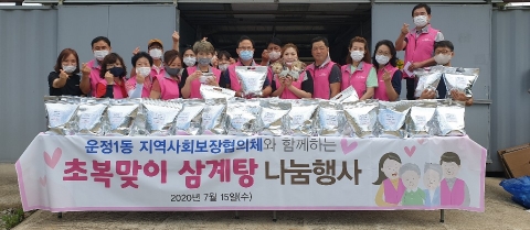 파주시 운정1동 지역사회보장협의체(위원장 김영)는 15일 관내 취약계층을 위한 ‘초복맞이 삼계탕 나눔 행사’를 진행했다.