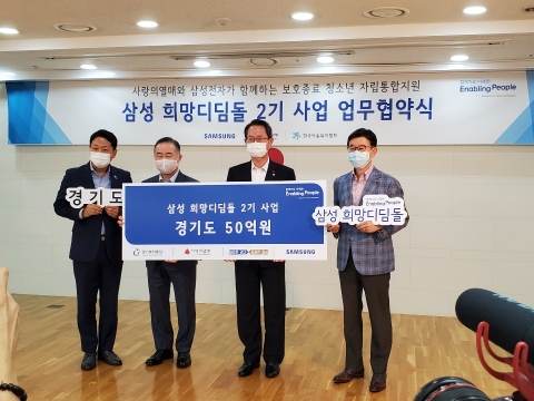 경기도가 삼성에서 후원하고 사랑의열매 사회복지공동모금회에서 주관하는 ‘보호종료 청소년 자립통합지원사업’ 대상 지역에 최종 선정돼 총 50억원을 후원받는 업무 협약을 15일 체결했다.