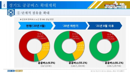 도는 광역버스(254개 노선)의 운영체계를 ‘공공버스’로 전환, 올 하반기까지 점유율을 55%(140개 노선), 오는 2021년까지 81%(206개 노선)까지 단계적으로 확대해 나갈 계획이다.