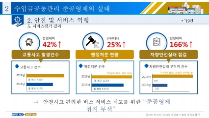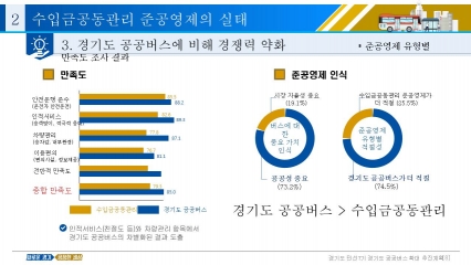 ‘수입금공동관리 준공영제’는 민간이 노선 소유권과 운영을 맡고 공공이 적자에 대해 표준운송원가를 기준으로 재정지원을 하는 방식으로, 2018년 4월 도입돼 현재 14개 시군에서 71개 노선을 운행하고 있다.