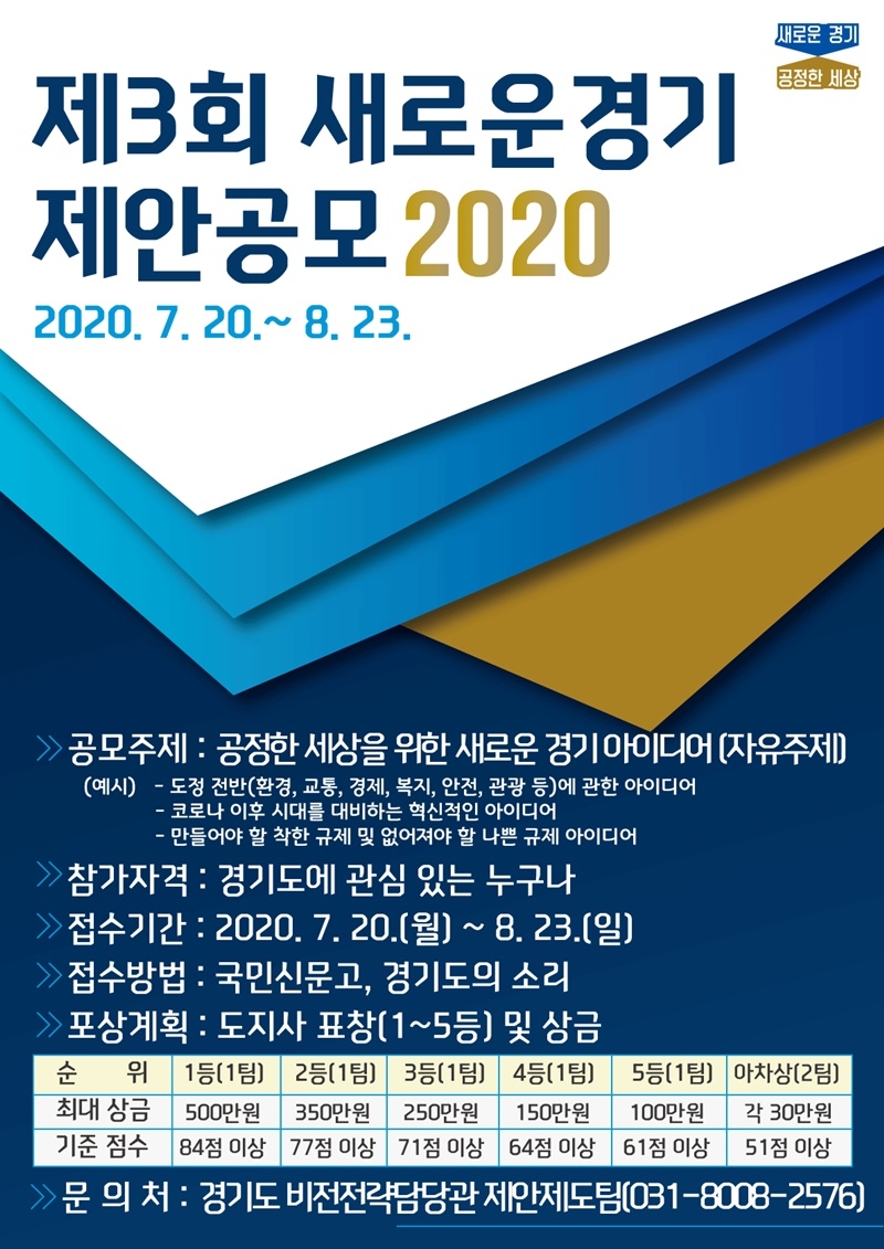 - 경기도, 제3회 ‘새로운 경기 제안 공모 2020’ 개최