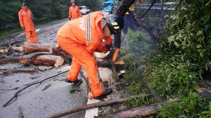 이후 16:40분에는 비상단계를 상향해 가용 소방력의 1/2를 근무조로 편성하는 한편, 소방력 226명, 장비 152대(차량68/수방장비84)를 투입해 신속한 인명구조 활동 및 도민 피해방지와 복구에 주력하였다.
