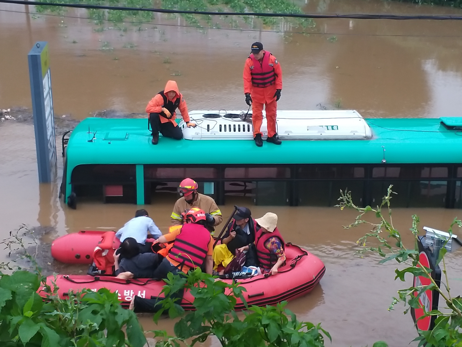 실제로 지난 6일 오전 6시37분경 파평면 율곡리 율곡수목원 인근에서 운전자 1명과 승객4명을 태운 버스가 갑자기 불어난 물에 침수된 현장에서 구조대의 신속한 구조활동으로 30분만에 5명 모두 안전하게 구조하였다.