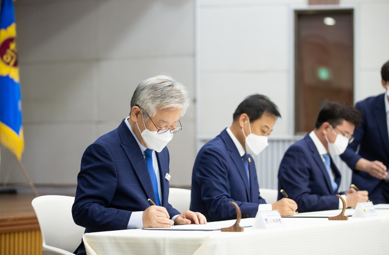 이재명 경기도지사와 장현국 경기도의회의장, 박근철 경기도의회 더불어민주당 대표의원은 21일 의회 1층 대회의실에서 ‘공동협약서 서명식’을 열고 소통과 협치를 바탕으로 경기도민의 민생과 삶의 질 향상을 위해 노력하기로 합의했다.