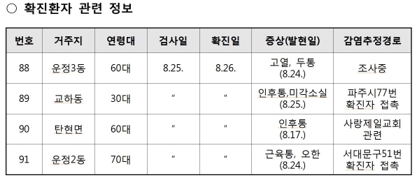 ※ 이동동선은 역학조사 후 파주시 홈페이지에 게시 예정입니다.