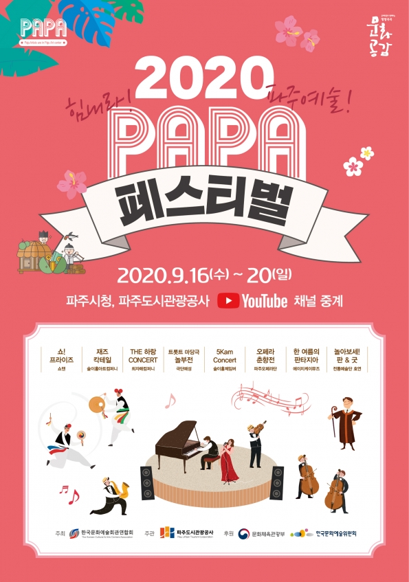 파주도시관광공사(사장 손혁재)가 오는 20일까지 ‘2020 PAPA페스티벌’을 온라인 개최한다.