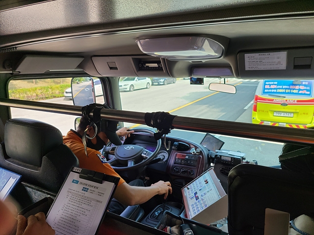 평가 인원 38명은 교관의 지도하에 펌프차량 및 구급차량을 이용 운행 전 차량 점검 요령, 운전석 운행장치 등 각종 계기 조작요령, 특장장치 조작 방법, 비상 시 차량 응급조치 요령, 주행코스를 운행 등의 순으로 진행했다.