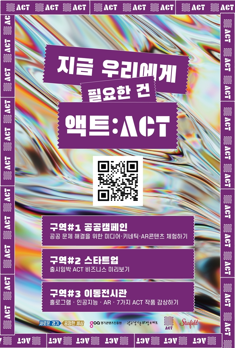 경기도는 8일부터 18일까지 스타필드 하남에서 문화기술(CT) 공공콘텐츠 전시회 ‘지금 우리에게 필요한 건 [액트:ACT(Art Content Technology)]’를 개최한다고 7일 밝혔다.