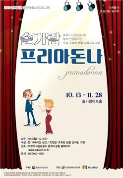 파주도시관광공사(사장 손혁재)가 10월 13일부터 공연체험프로그램 ”솔가람 프리마돈나“ 를 개최한다.