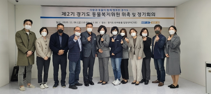 경기도는 6일 경기도반려동물입양센터에서 열린 ‘2020 하반기 경기도 동물복지위원회 정기회의’에서 민간 동물복지 분야 전문가 9명을 ‘제2기 경기도 동물복지위원회’의 위원으로 위촉했다.
