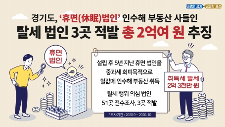 경기도, ‘휴면법인’ 인수해 부동산 사들인 탈세 법인 3곳 적발. 2억여 원 추징