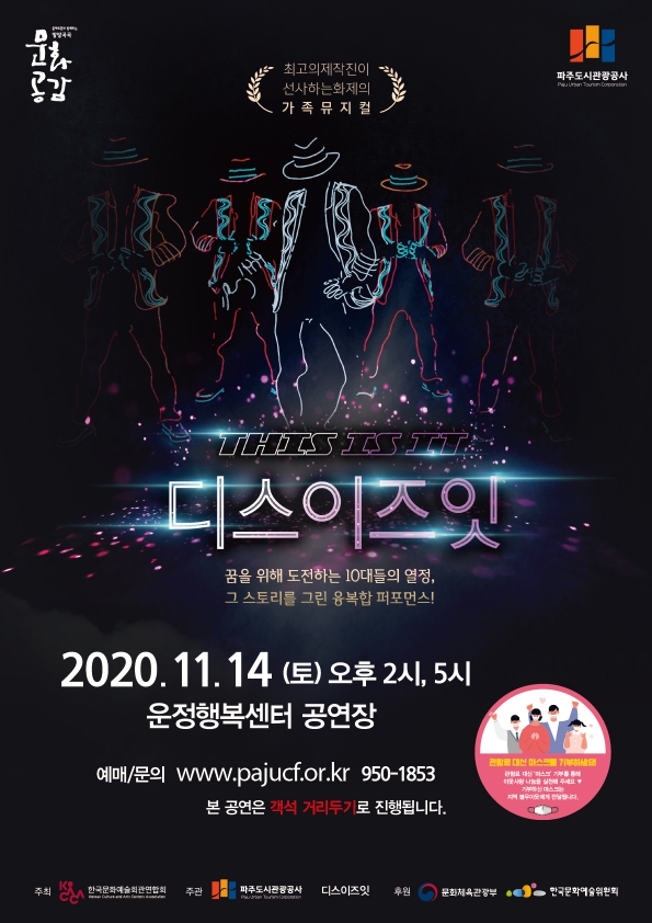 파주도시관광공사(사장 손혁재)가 오는 14일(토) 운정행복센터에서 넌버벌 퍼포먼스‘디스이즈잇(THIS IS IT)’을 개최한다.