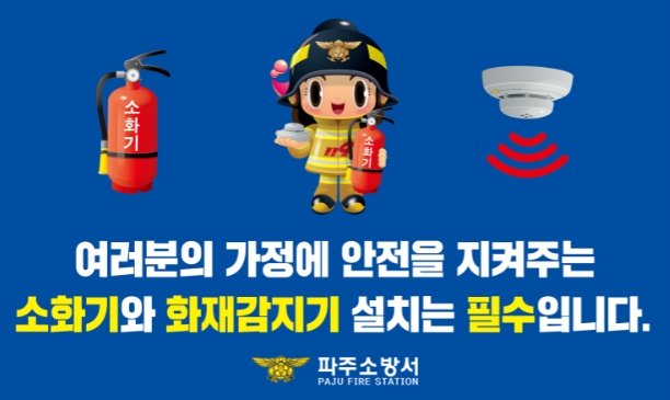 파주소방서(서장 김인겸)는 제73회 불조심 강조의 달을 맞아 주택 화재 예방·대응을 위해 주택용 소방시설(소화기, 단독경보형감지기)을 의무적으로 설치해야한다고 17일 밝혔다.