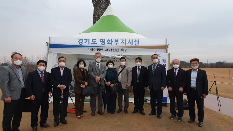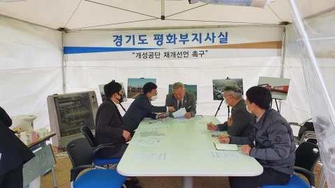 남북 정상의 개성공단 재개선언 촉구를 위해 나선 경기도가 지난 10일부터 평화부지사 현장 집무실을 파주 임진각에 설치해 운영 중인 가운데, 각계각층의 격려와 성원이 이어지고 있다.