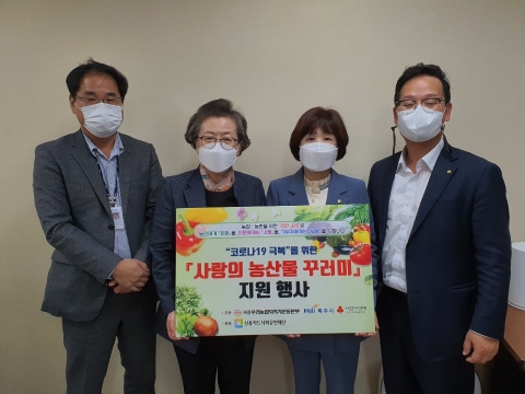 파주시는 (사)우리농업지키기운동본부 경기지역본부(본부장 노세현)가 지난 20일 파주시에 1,000만 원 상당의 ’사랑의 농산물 꾸러미‘ 200박스를 전달했다고 밝혔다.