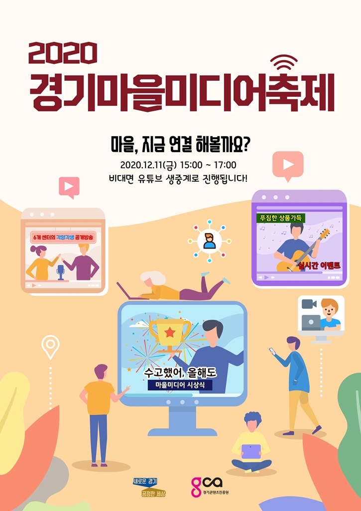 경기마을미디어축제는 11일 오후 3시부터 경기콘텐츠진흥원 유튜브 채널을 통해 진행되며 관심 있는 사람은 누구나 유튜브를 통해 실시간 시청, 참여할 수 있다.