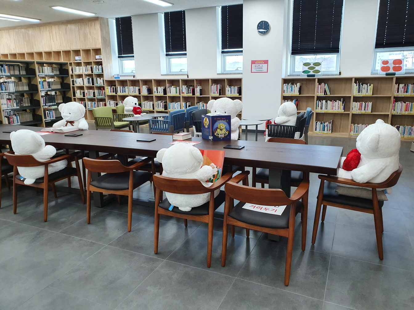 ‘책과 함께 파티를’은 크리스마스 또는 겨울을 배경으로 하는 책을 읽고 손 글씨로 편지 쓰기(책속인물, 사서, 좋아하는사람 중 선택) 및 미니트리 만들기 체험활동 인증샷을 술이홀도서관 SNS에 올리거나 직접 도서관에 손 편지를 제출해주면 된다. 사진이벤트인 ‘도서관과 함께 찰칵’은 도서관 자료실에 비치된 망토, 머리띠, 산타복 등 파티용품을 활용해 도서관의 좋아하는 장소에서 사진을 찍으며 즐기는 행사로, 찍은 사진을 개인 SNS에 필수해시태그 ‘#술이홀도서관’을 달아 도서관을 홍보해준 이용자에게는 연체자 해지 등 행운권을 제공한다. ‘따스함을 그대품안에’는 추운겨울을 따뜻하게 보낼 수 있도록 책을 빌리면 곰인형을 대여해준다. 또한 이 곰인형들은 ‘좌석 간 띄어앉기’와 같은 딱딱한 문구대신 자료실 내 밝고 따뜻한 분위기를 연출하면서 자연스럽게 사회적 거리두기를 할 수 있도록 활용되고 있다.
