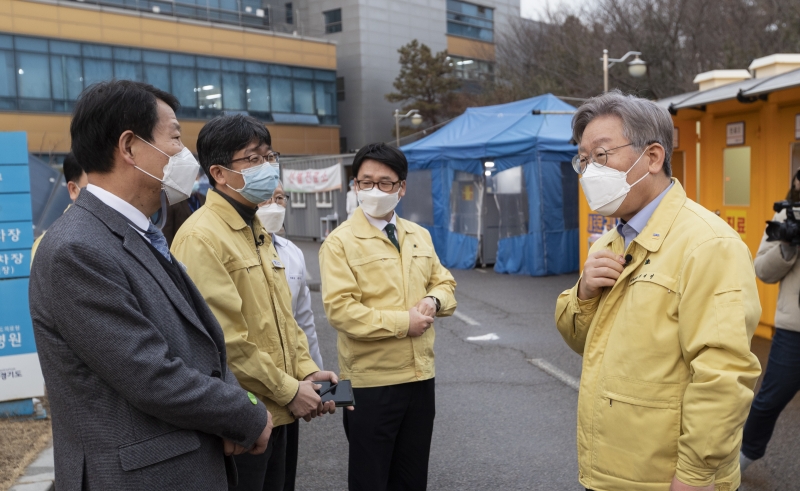 이재명 지사는 이날 오후 경기도의료원 파주병원을 방문해 병원 입구에 마련된 선별진료소를 둘러본 뒤 현장 의료진에게 감사를 표했다.