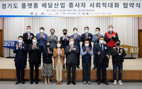 이재명 경기도지사는 29일 경기도청 제1회의실에서 플랫폼 배달산업 관련 3개 노동조합 및 9개 플랫폼기업 대표들과 만나 간담회를 갖고, 이 같은 내용의 ‘경기도 플랫폼 노동 사회적대화 협약서’에 서명했다.