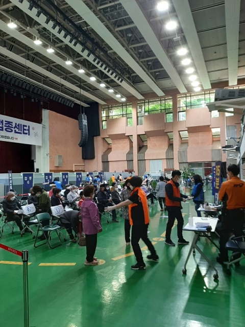 의용소방대원 10명(오전 5명, 오후 5명)은 매주 토요일 4시간씩 ▲도로 주차안내 ▲거동이 불편한 어르신들의 승·하차 및 이동안내 ▲접종 안내 등 봉사를 실시하고 있다.