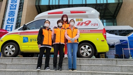 파주소방서 의용소방대, 코로나19 예방접종센터 일손 돕기 나서