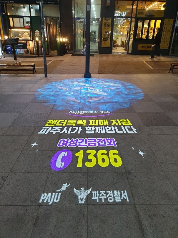 로고라이트를 통해서는 ‘젠더폭력 피해 지원 파주시가 함께 합니다’라는 문구를 LED 조명을 통해 바닥에 투사해 이미지를 표출하는데 이는 심리적 안정을 주는 효과가 있다. 비상벨 LED 안내판은 기존 골목길에 설치된 비상벨 위에 LED 안내판을 설치해 야간에도 잘 보이게 해, 위급 상황에 보다 빨리 비상벨을 찾을 수 있도록 했다. 솔라표지병은 태양광을 이용 어두운 골목길 등 도로의 조도를 개선해 범죄심리 차단 효과가 있다.