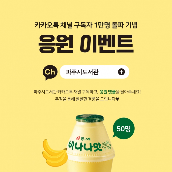 파주시도서관, 카카오톡 채널 구독자 1만 돌파 - 응원 이벤트 진행