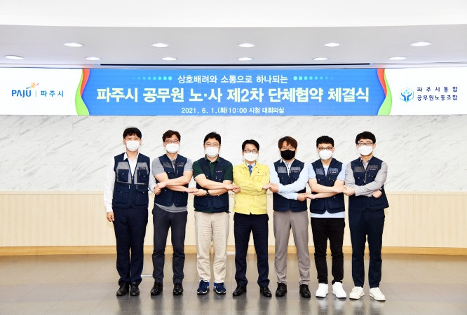 최종환 파주시장은 ”코로나19로 어려운 시기에 연대와 상생의 정신을 발휘해 노사합의를 이뤄낸 공무원노조에 감사드린다“라며 ”서로 존중하고 바람직한 노사관행을 모범적으로 실천해 혁신하고 도약하는 파주시가 되도록 계속 노력하겠다“라고 말했다.
