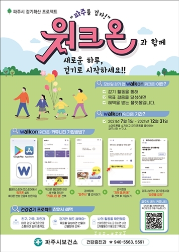 파주시보건소가 워크온 걷기운동 사업에 함께할 참여자를 모집한다.