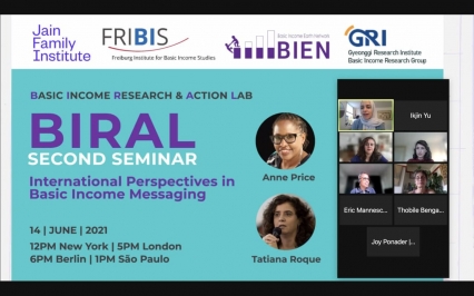 경기연구원 기본소득연구단은 지난 15일 기본소득지구네트워크(BIEN), 독일 프라이부르크 기본소득연구소(FRIBIS), 미국 제인패밀리연구소와 함께 두 번째 기본소득 국제세미나를 온라인으로 개최했다.