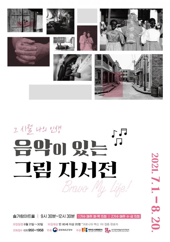 파주도시관광공사는 문화체육관광부가 주최하고 한국문화예술회관연합회가 주관하는 2021년 문예회관 문화예술교육프로그램 지원 사업 <음악이 있는 그림 자서전 “그 시절 나의 인생’>