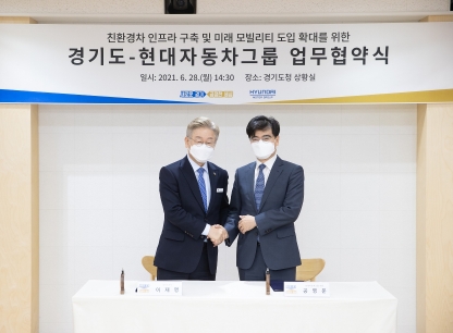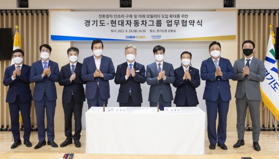 경기도가 미래자동차 기술의 급격한 발전과 저탄소-친환경 경제 전환에 선제적으로 대응하고자 현대자동차그룹과 손잡고 ‘친환경·미래 모빌리티 생태계’ 구축에 나선다.