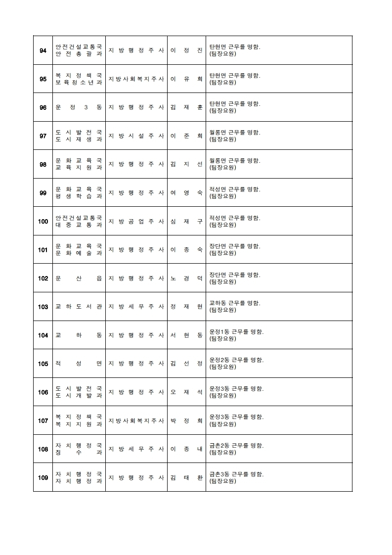 ○ 일자리경제과장 신승화 ○ 세정과장 봉상균 ○ 노인장애인과장 최희진