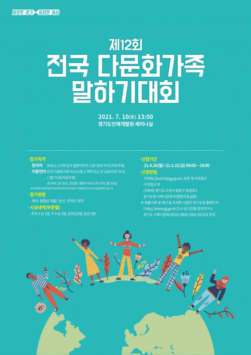 경기도는 결혼이민자와 다문화가족 자녀의 한국어 학습 동기 부여와 글로벌 인재 양성을 위해 ‘전국 다문화가족 말하기대회’를 2009년부터 매년 열고 있다. 올해는 코로나19 상황을 고려해 비대면 온라인 경연으로 진행된다.