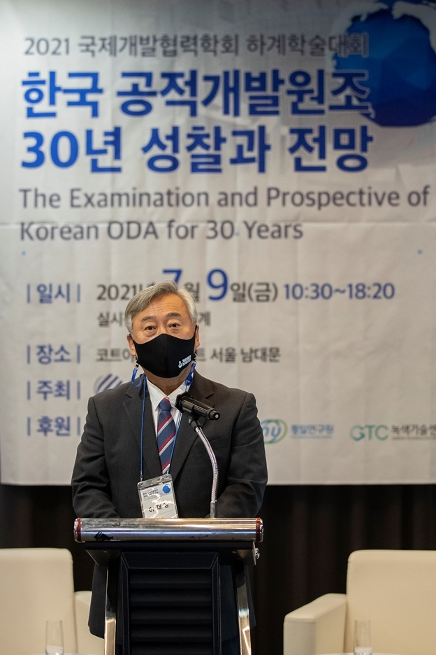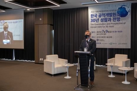 이재강 경기도 평화부지사는 지난 9일 서울 중구 소재 코트야드 서울 남대문에서 온․오프라인 병행 방식으로 개최된 ‘2021 국제개발협력학회 하계 학술대회’에 참석해 ‘경기도형 평화 ODA’의 가치와 비전을 알리고, 이에 대한 학계 전문가들의 지속적인 관심과 성원을 당부했다.