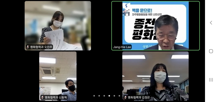 주요 내용은 ▲평화협정 및 평화체제의 의미 ▲한반도 정전체제 종식 방안 ▲한반도 평화체제구축의 기본방향 ▲평화체제 구축 시 법적인 고려사항 등이며 코로나19 확산방지를 위해 비대면으로 진행됐다.