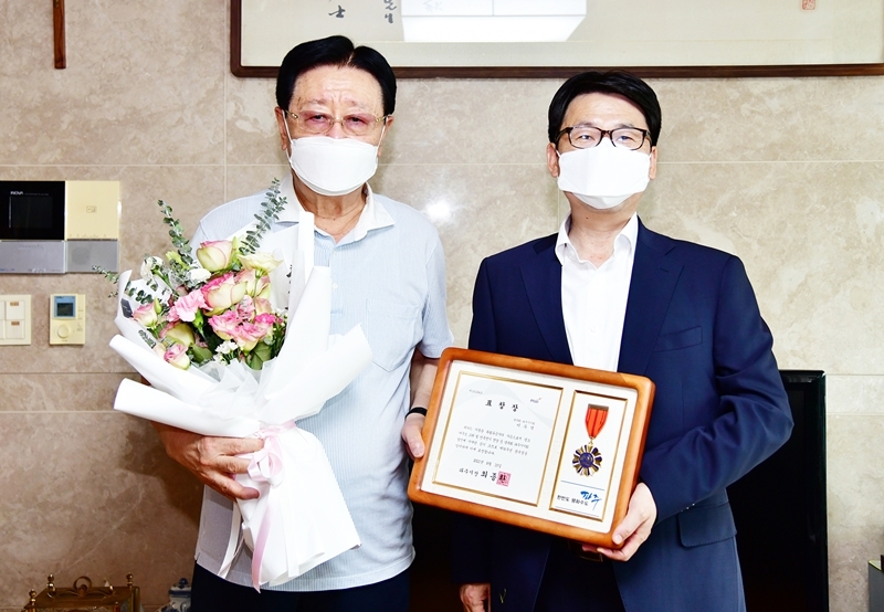 시는 코로나19 상황을 고려해 오는 15일 예정됐던 제76주년 광복절 기념식을 취소하고 이날 광복군제3지대와 OSS특수훈련단에서 활약하신 故한이윤 지사의 부인 이정미(86세) 여사와 광주농업학교 학생시절 3.1만세운동을 주도한 故이동운 의사의 손자녀 이우석(79세) 선생을 방문했다.
