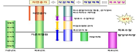 이번 2단계 기본계획 역시 목표수질을 달성할 수 있도록 단위유역별 오염물질 할당부하량(총량)을 제시했으며, 시·군은 할당부하량 범위에서 지역개발사업을 추진할 수 있다.