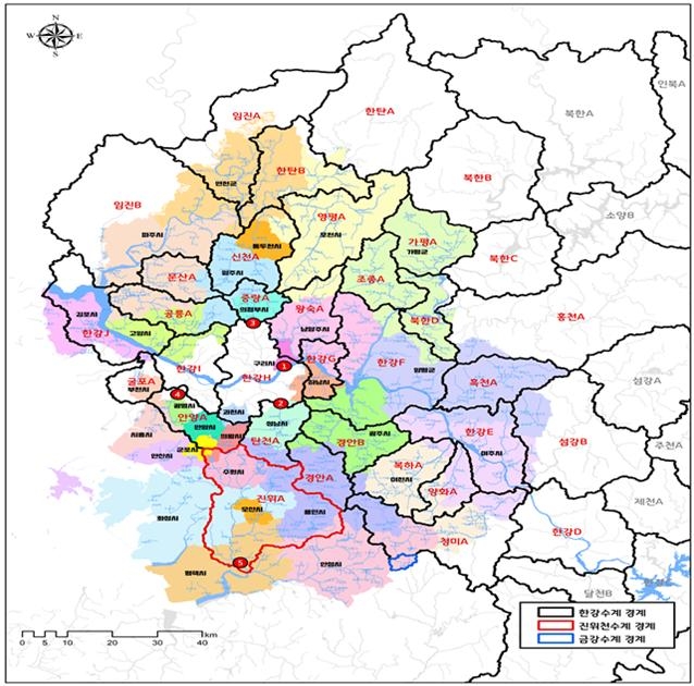 - 용인, 군포, 의왕은 한강과 진위천, 안성은 3개 수계 모두 해당