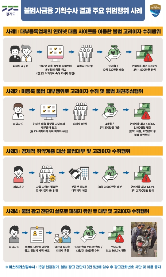 경기도 특사경, 연 3,338% 살인적인 고금리에 협박까지 일삼은 대부업 일당 검거