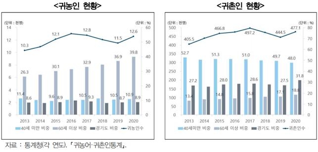 이처럼 농가인구 감소세 속에서 귀농·귀촌 인구는 늘어남에 따라 정부와 지방정부는 귀농·귀촌 정책을 양적 확대 위주에서 정착지원으로 전환하고 있다.