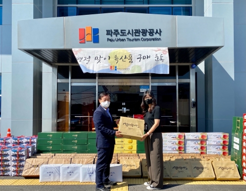 파주도시관광공사(이하 공사)가 민족 최대명절 추석을 맞이하여 관내 특산품 구매운동을 통해 코로나19로 침체된 지역경제 살리기에 동참하였다.