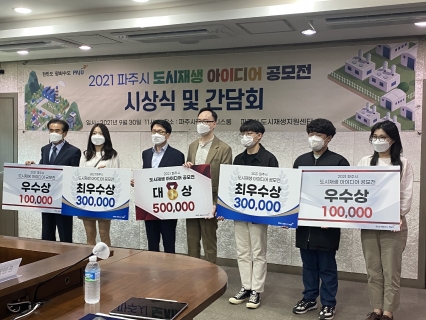 파주시는 9월 30일 ‘우리가 꿈꾸는 파주, 함께 새롭게 2021 파주시 도시재생 아이디어 공모전‘의 시상식을 진행했다.