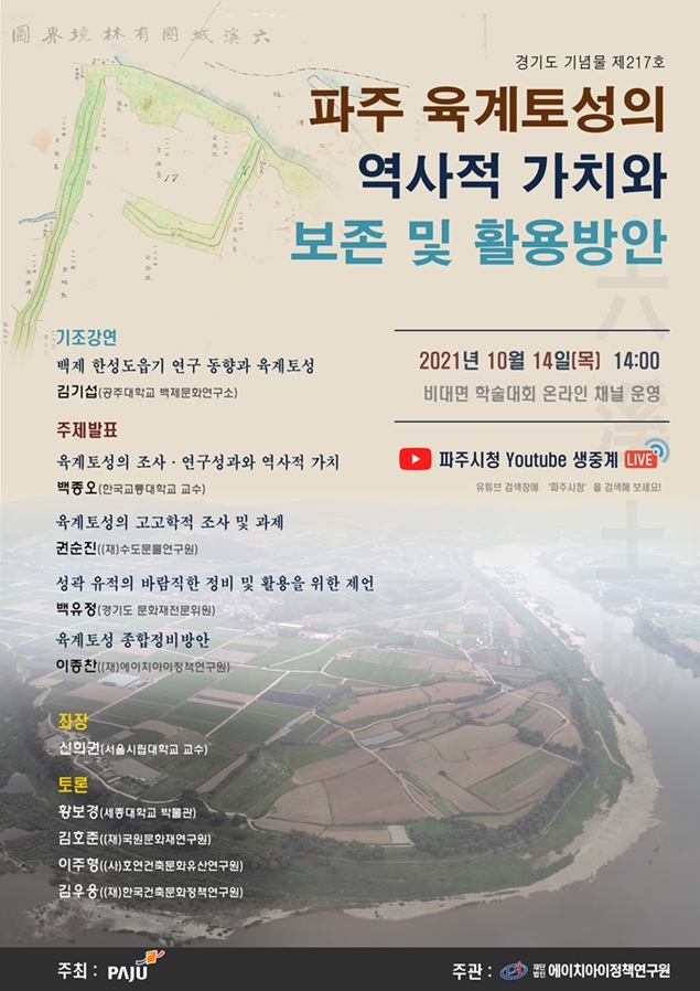 파주시(가 오는 14일 오후 2시 온라인으로 ‘파주 육계토성의 역사적 가치와 보존활용 방안’ 학술대회를 개최한다.