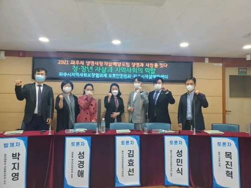 패널에는(토론자 가나다순) 김효선 파주여성새로일하기센터장, 목진혁 파주시의회 의원, 성경애 내맘애정신건강의학과의원 원장, 성민식 파주시정신건강복지센터 팀장, 이지호 고양서민금융통합지원센터장이 참석했으며, 자살은 지역사회 기관 협력을 바탕으로 한 사회적 관심과 접근이 필요한 사안임을 인식하고 지역사회 생명 존중 문화 확산 및 사회 안전망 구축을 위한 방안에 대해 논의했다.